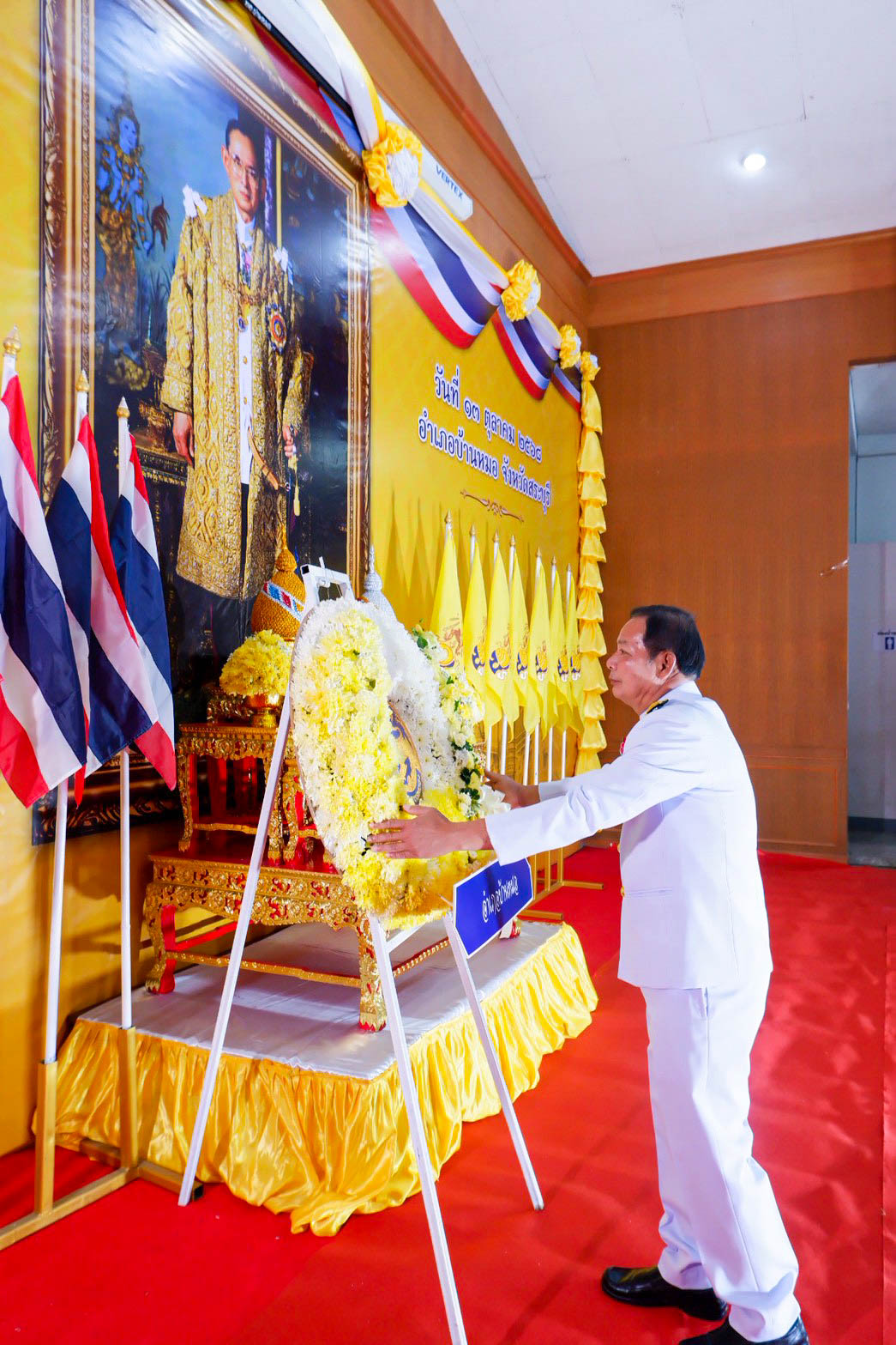 ร่วมกิจกรรมเนื่องในวันนวมินทรมหาราช พิธีสวดพระพุทธมนต์และตักบาตร ถวายพระราชกุศล และ พิธีวางพวงมาลา ณ ศาลาประชาคมเทศบาลตำบลบ้านหมอ