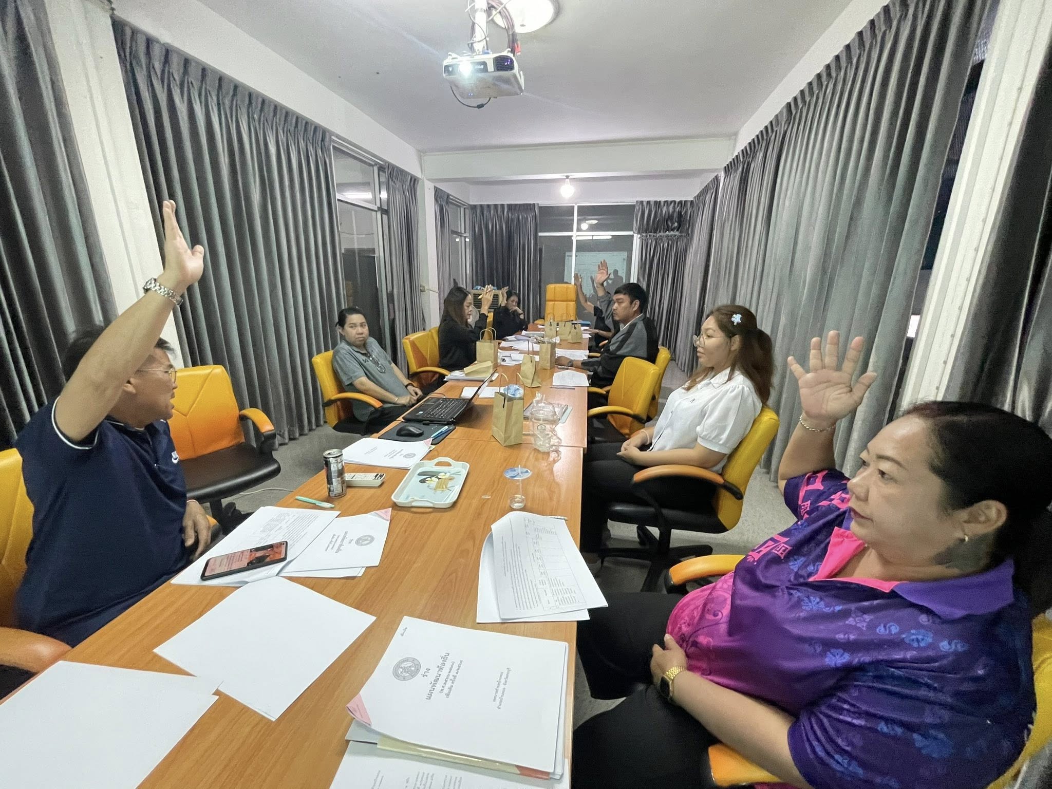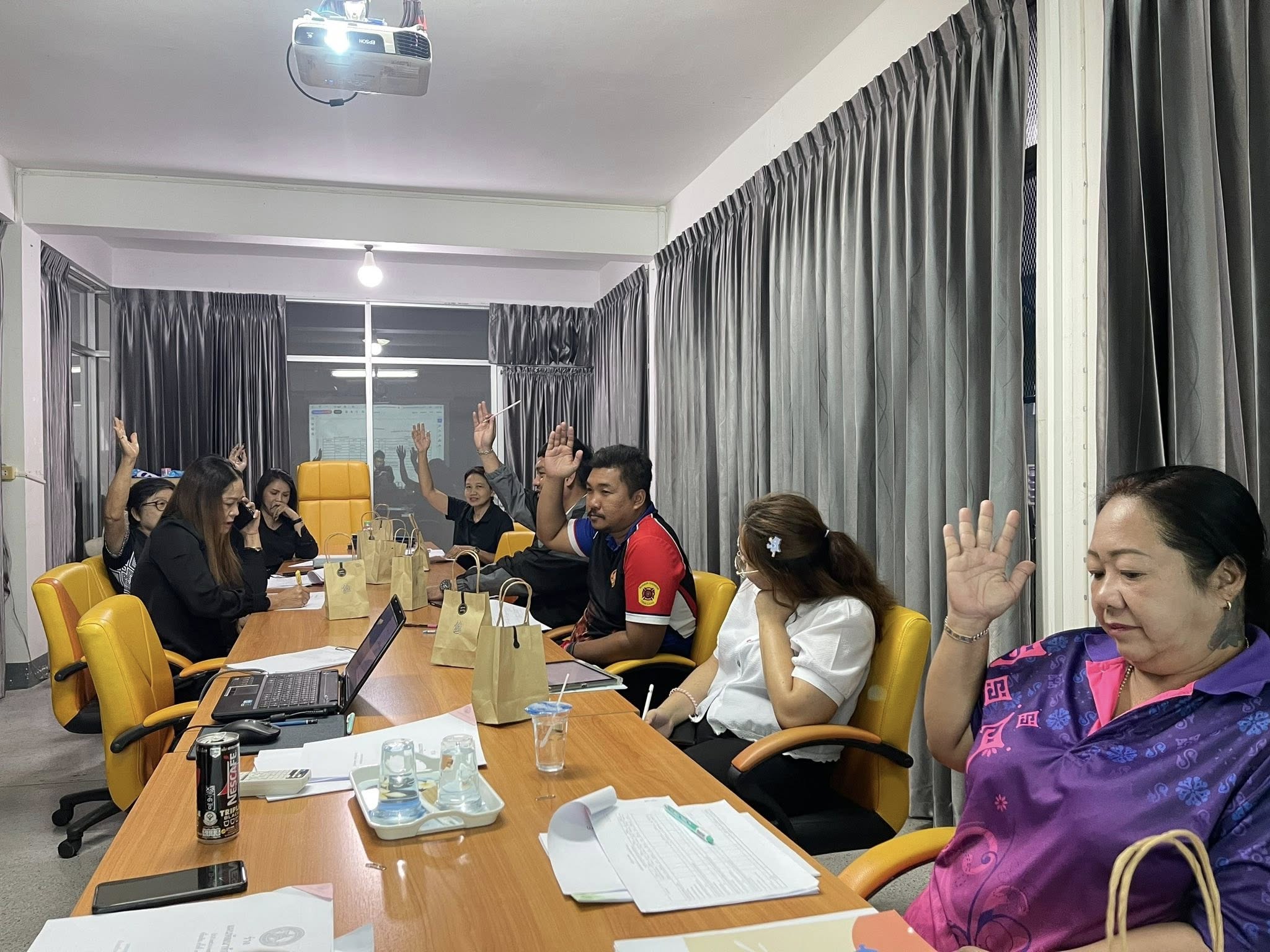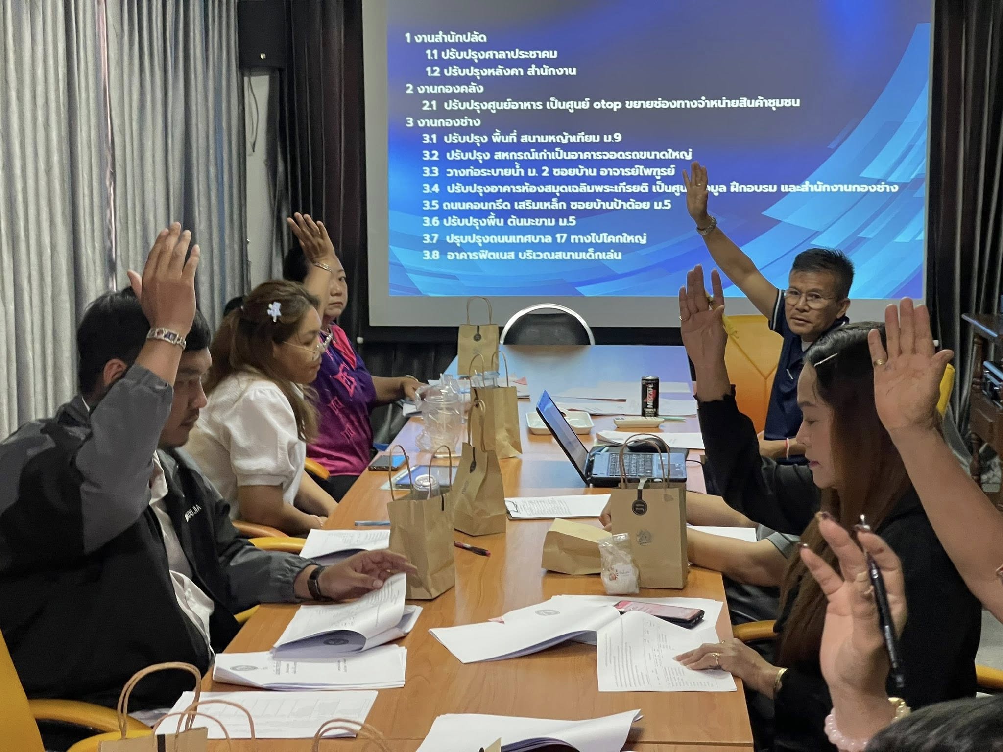 โดยมี พ.จ.อ.หญิง ดวงมณี จันทร์ทอง หัวหน้าสำนักปลัด รักษาราชการแทนปลัดเทศบาล เป็นประธานการประชุมพร้อมด้วย ผู้อำนวยการกองคลัง, ผู้อำนวยการกองช่าง, ผู้อำนวยการกองการศึกษา, ผู้อำนวยการกองสาธารณสุข, ผู้อำนวยการกองสวัสดิการสังคม, หัวหน้าฝ่ายป้องกันฯ ผู้แทนประชาคม หมู่ที่ 2, ผู้แทนประชาคม หมู่ที่ 3, ผู้แทนประชาคม หมู่ที่ 12, หัวหน้าสำนักปลัดเทศบาล และ นักวิเคราะห์นโยบายและแผน เข้าร่วมประชุม