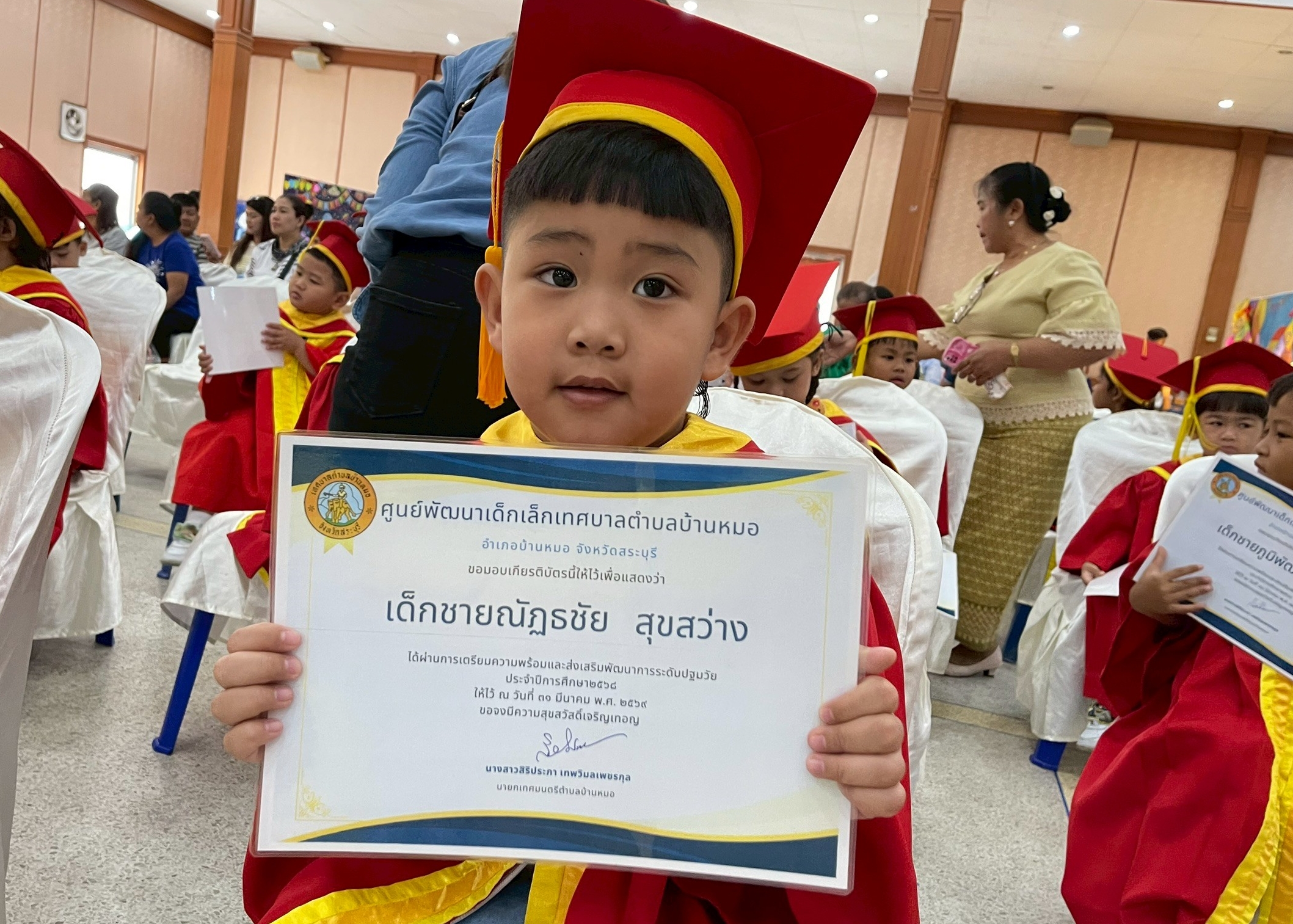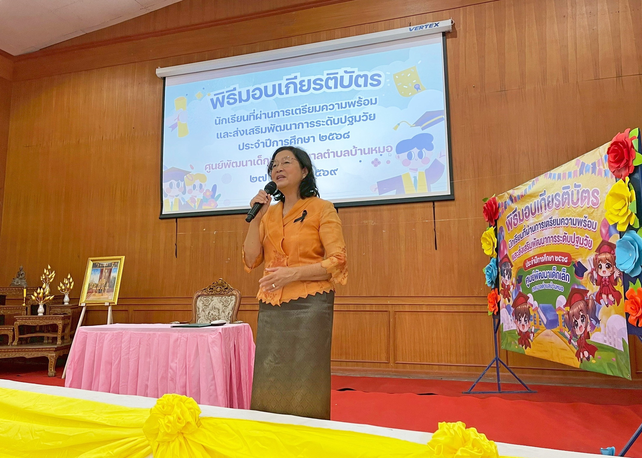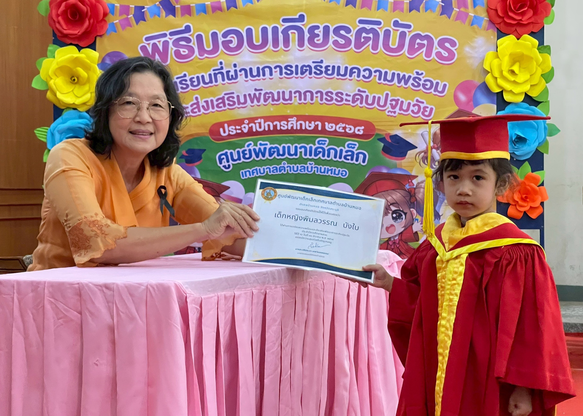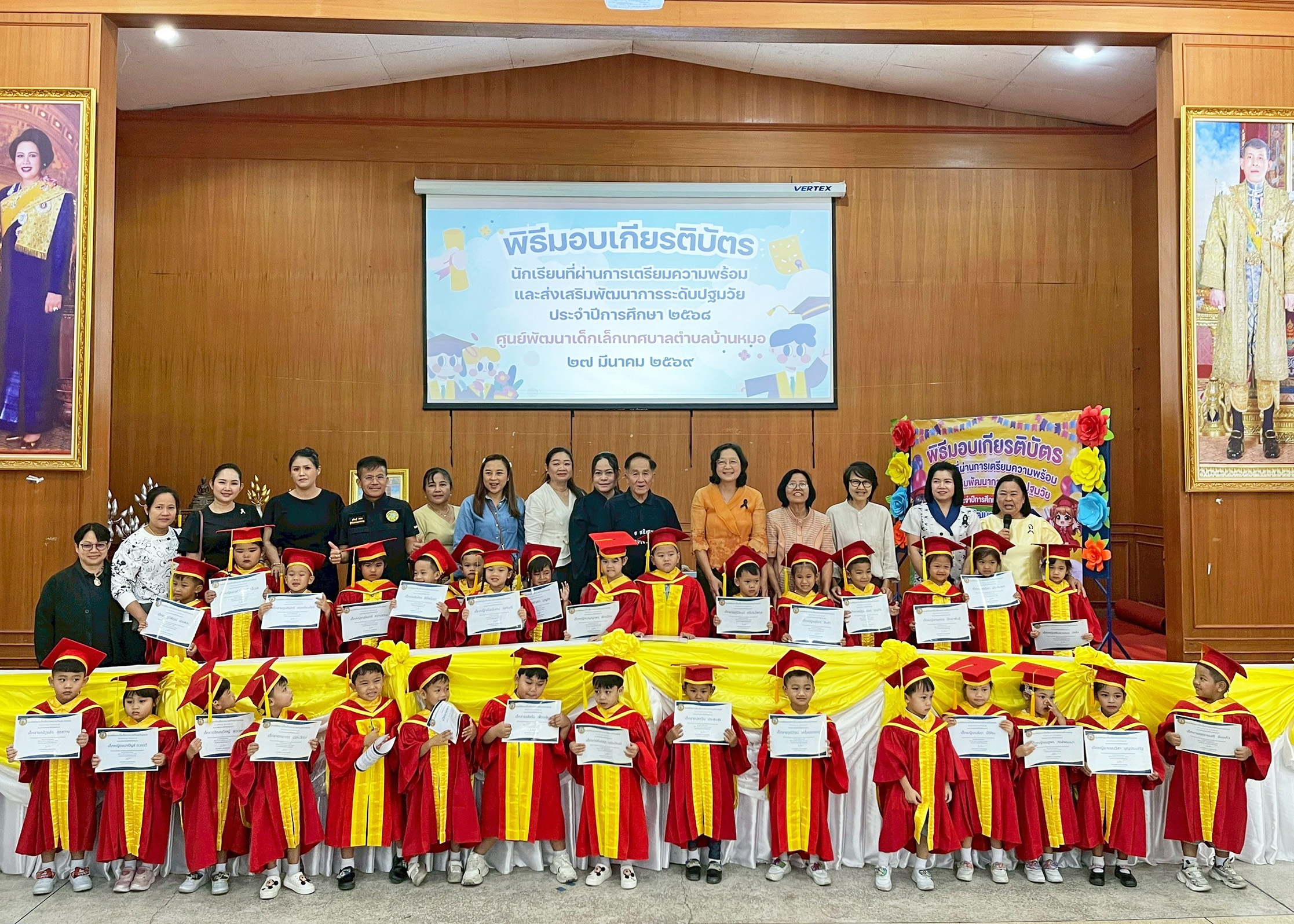 จัดพิธีมอบเกียรติบัตร นักเรียนที่ผ่านการเตรียมความพร้อมและส่งเสริมพัฒนาการระดับปฐมวัย ประจำปีการศึกษา 2568 ของศูนย์พัฒนาเด็กเล็กเทศบาลตำบลบ้านหมอ ซึ่งมีผู้สำเร็จการศึกษาจำนวน 35 คน โดยมีผู้ปกครองมาร่วมแสดงความยินดีกับน้องๆ ท่ามกลางบรรยากาศสุดชื่นมื่น ณ ศาลาประชาคมเทศบาลตำบลบ้านหมอ