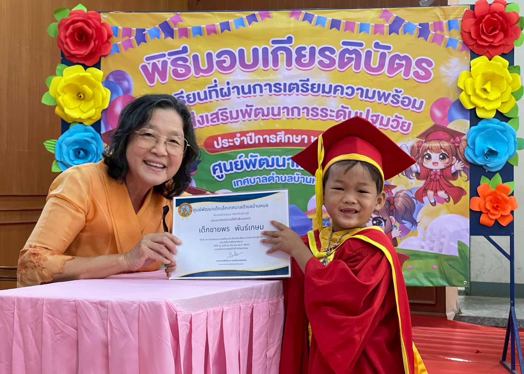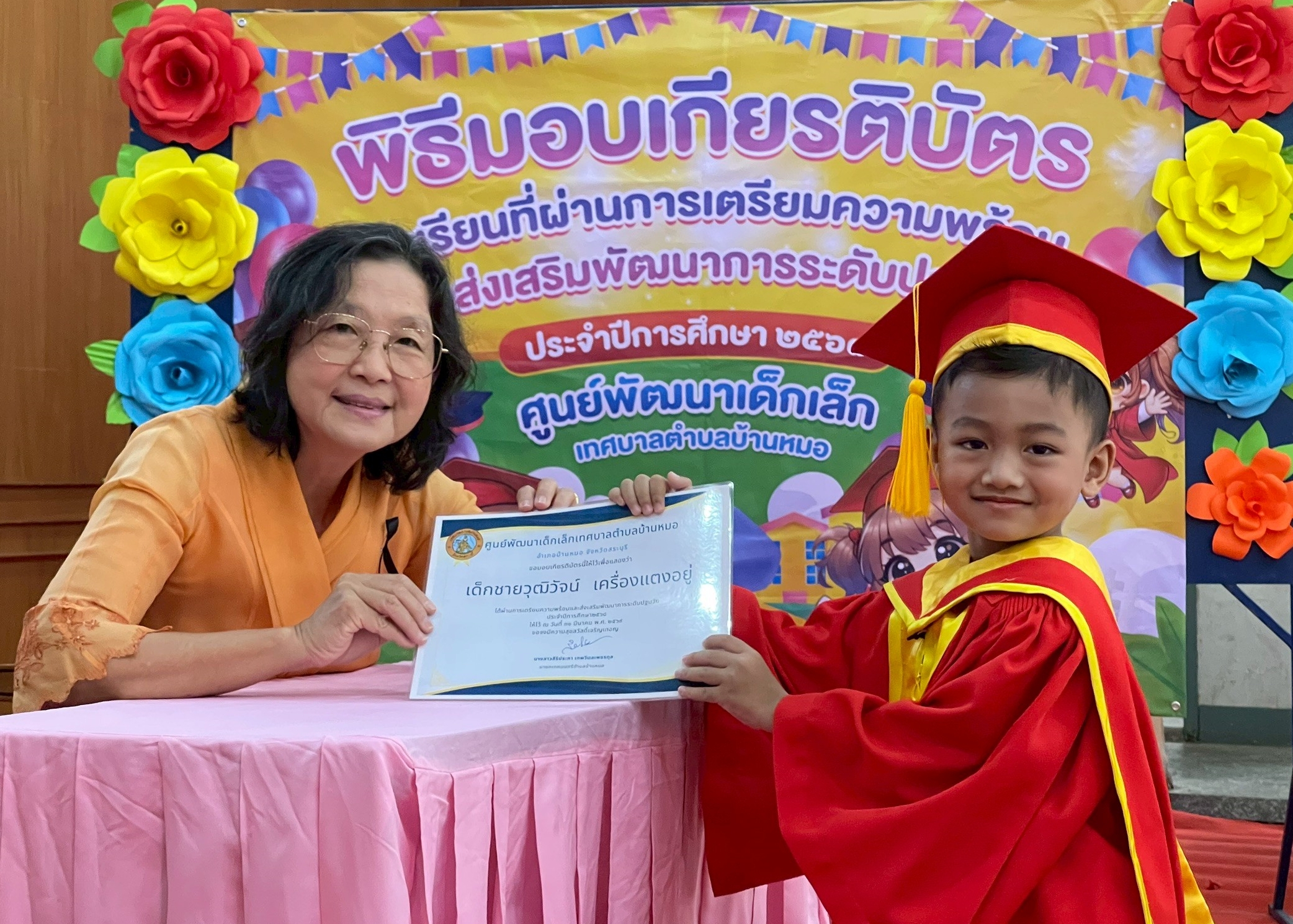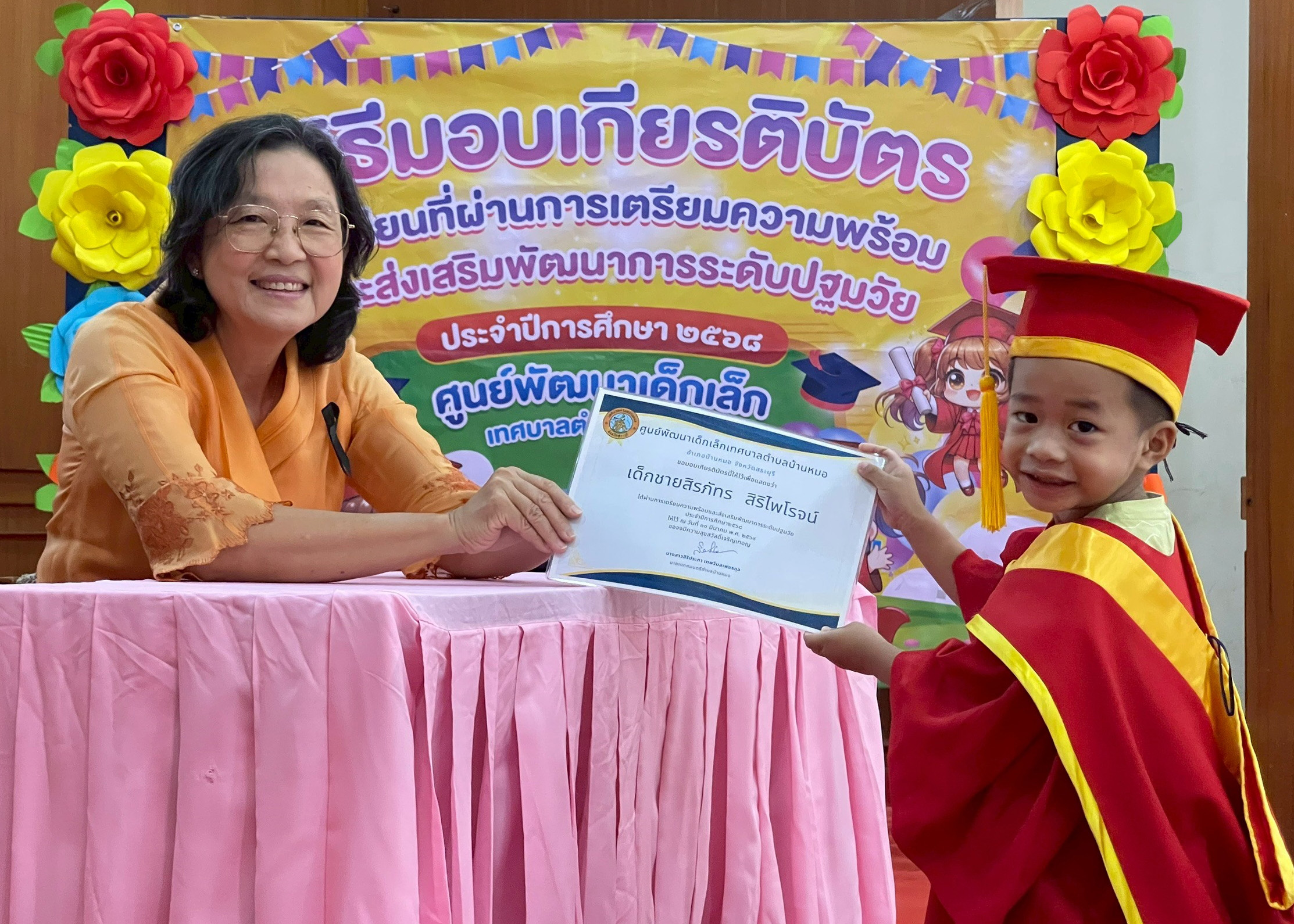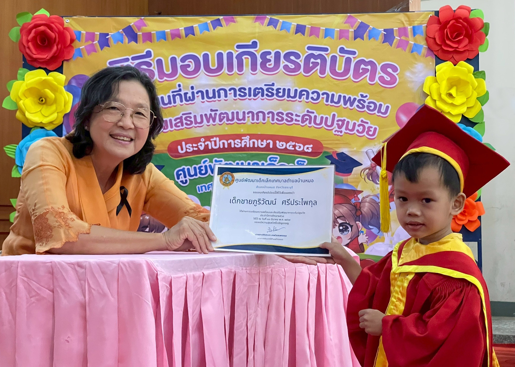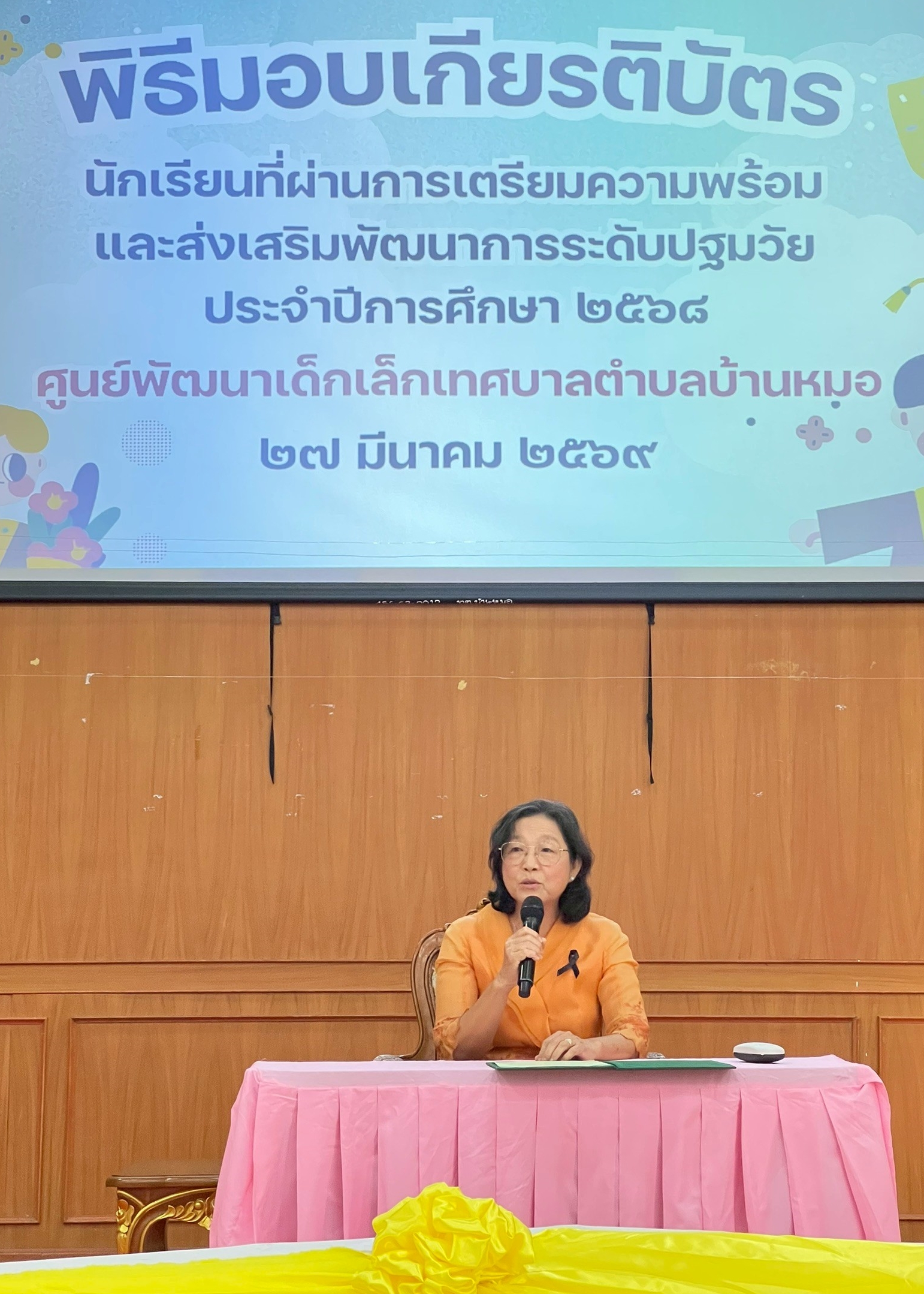 จัดพิธีมอบเกียรติบัตร นักเรียนที่ผ่านการเตรียมความพร้อมและส่งเสริมพัฒนาการระดับปฐมวัย ประจำปีการศึกษา 2568 ของศูนย์พัฒนาเด็กเล็กเทศบาลตำบลบ้านหมอ ซึ่งมีผู้สำเร็จการศึกษาจำนวน 35 คน โดยมีผู้ปกครองมาร่วมแสดงความยินดีกับน้องๆ ท่ามกลางบรรยากาศสุดชื่นมื่น ณ ศาลาประชาคมเทศบาลตำบลบ้านหมอ
