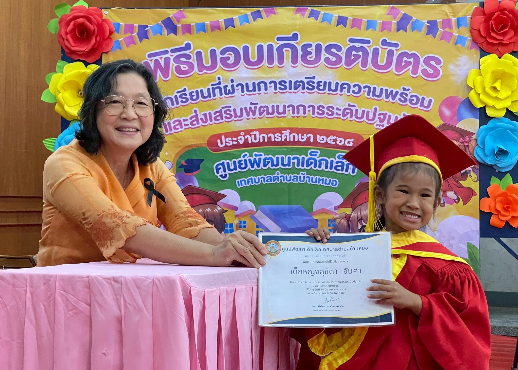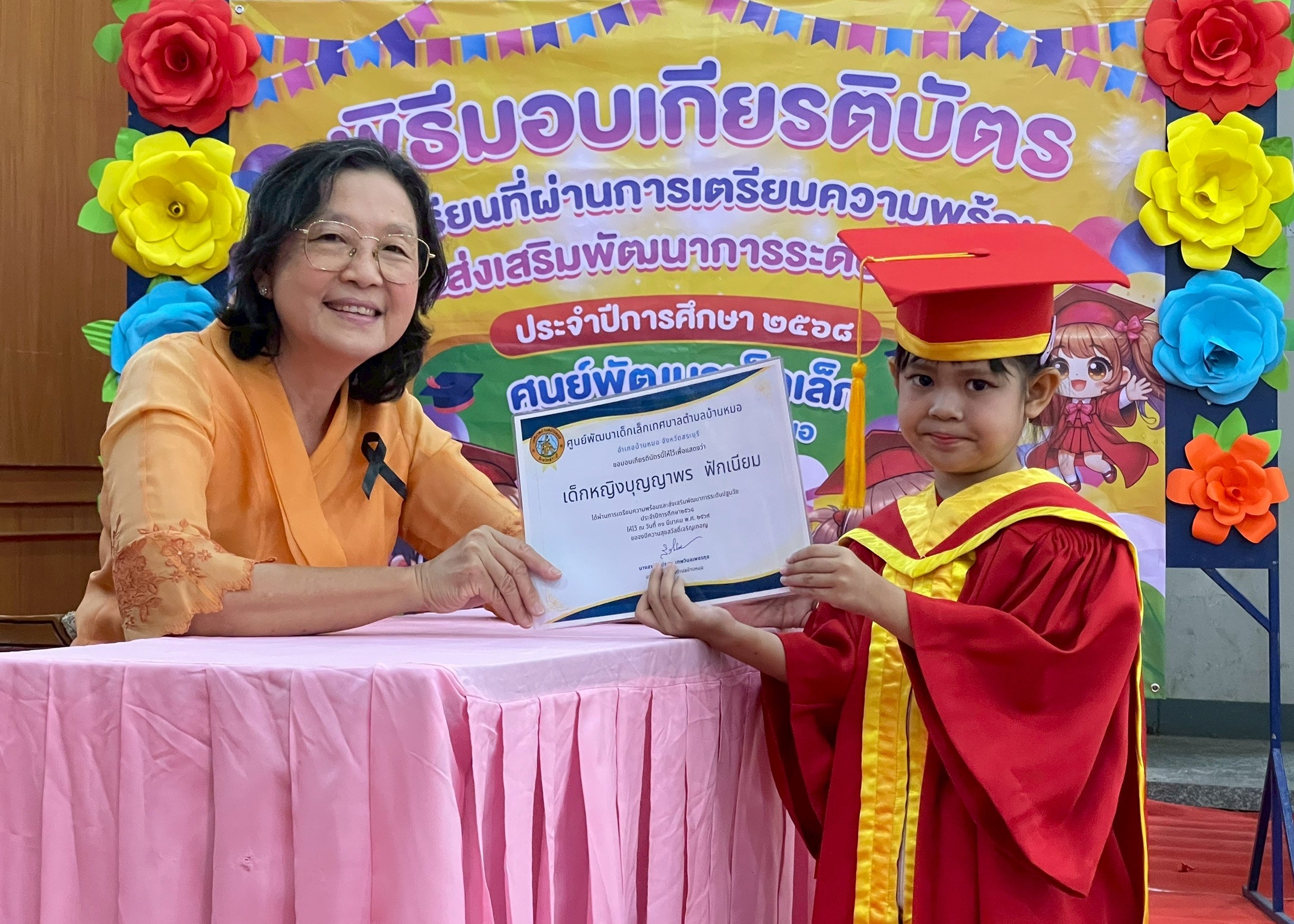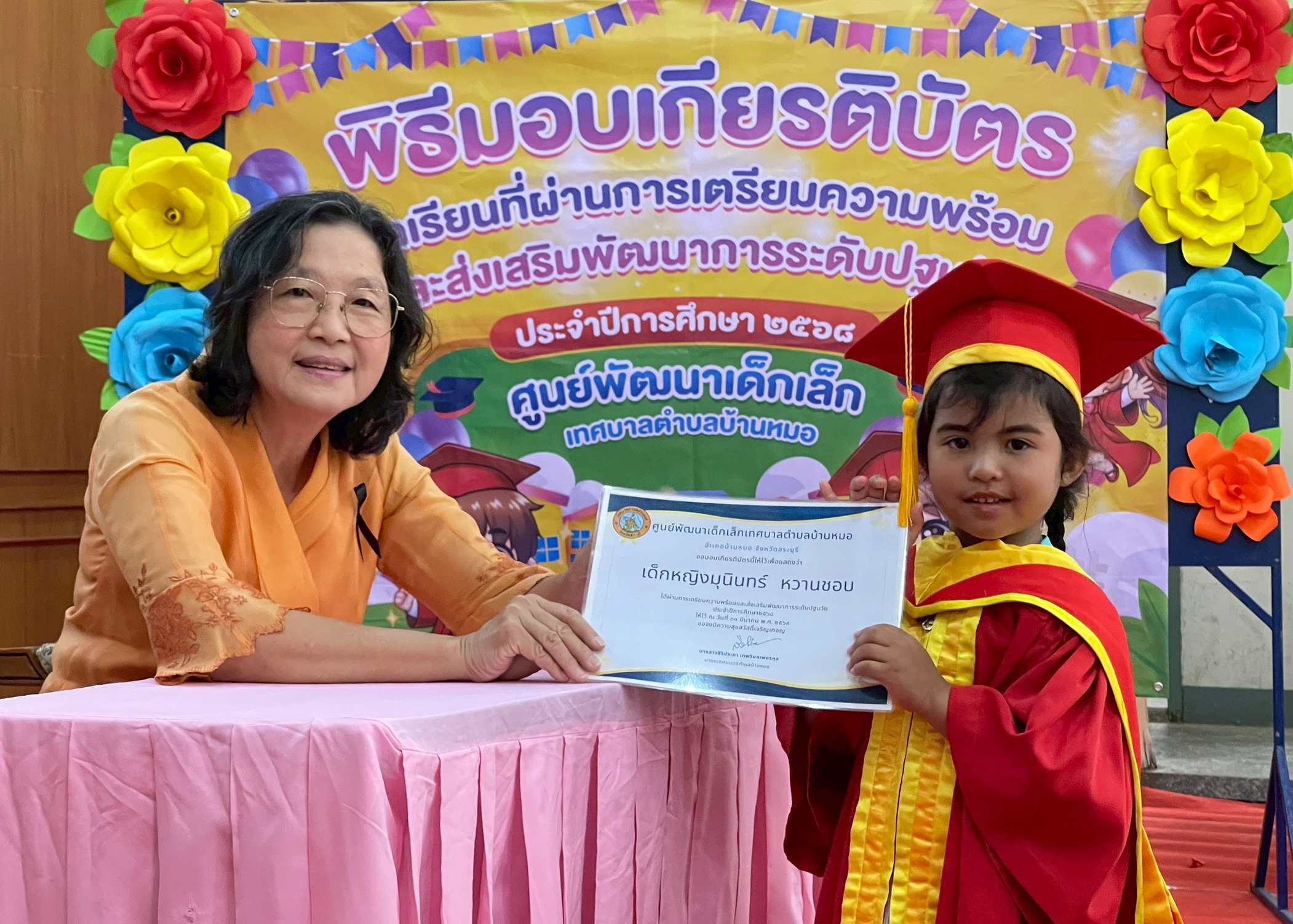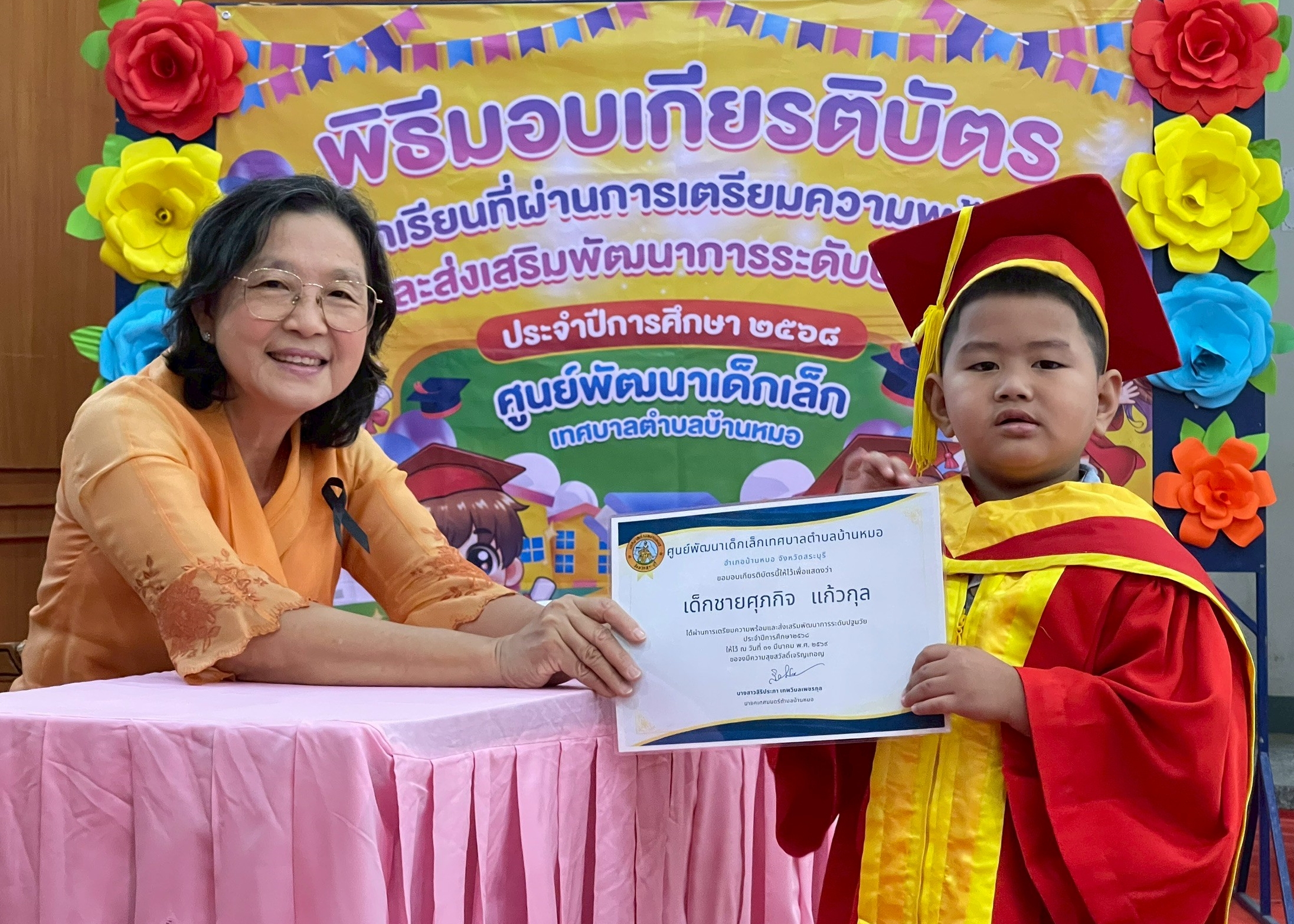 จัดพิธีมอบเกียรติบัตร นักเรียนที่ผ่านการเตรียมความพร้อมและส่งเสริมพัฒนาการระดับปฐมวัย ประจำปีการศึกษา 2568 ของศูนย์พัฒนาเด็กเล็กเทศบาลตำบลบ้านหมอ ซึ่งมีผู้สำเร็จการศึกษาจำนวน 35 คน โดยมีผู้ปกครองมาร่วมแสดงความยินดีกับน้องๆ ท่ามกลางบรรยากาศสุดชื่นมื่น ณ ศาลาประชาคมเทศบาลตำบลบ้านหมอ