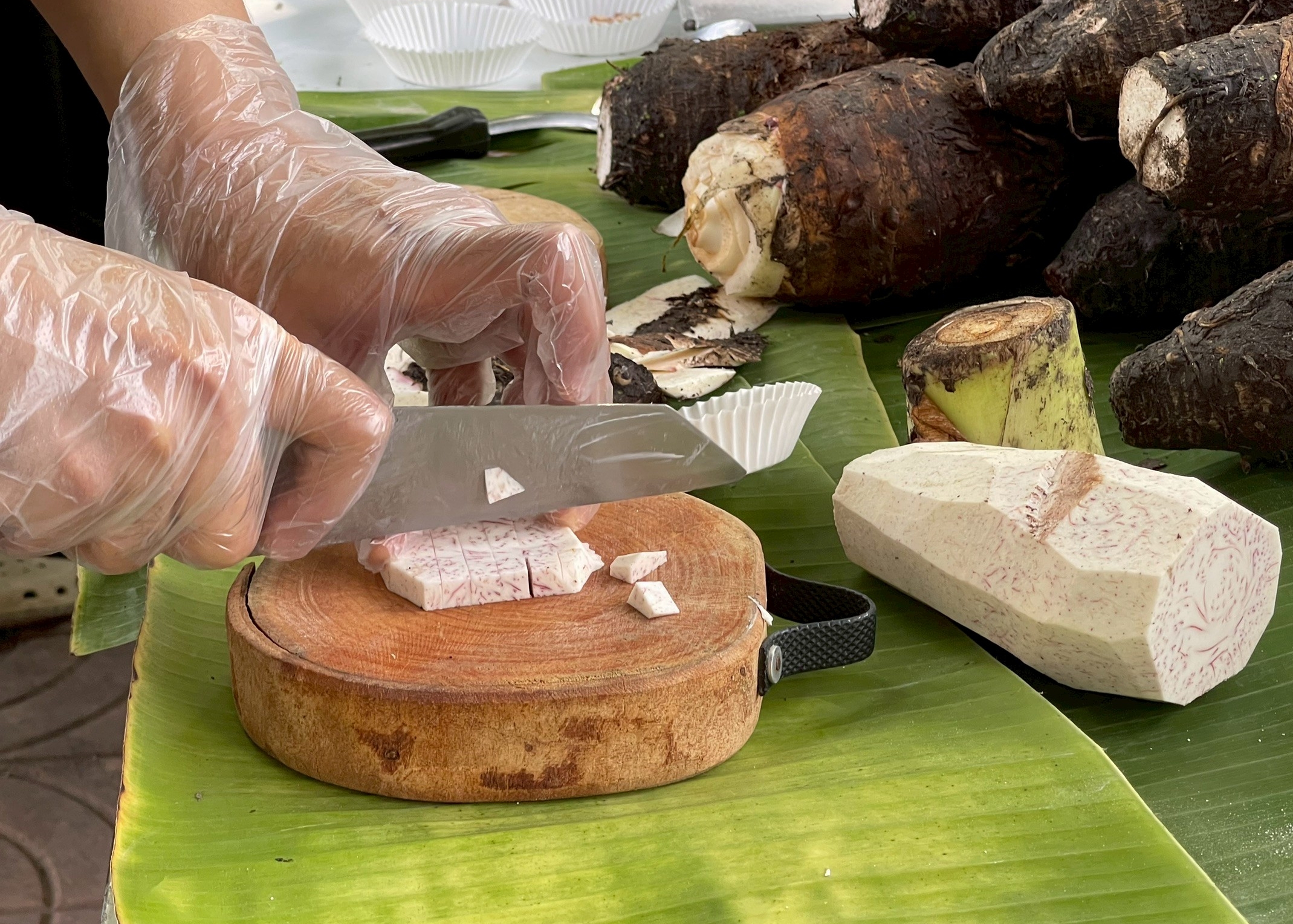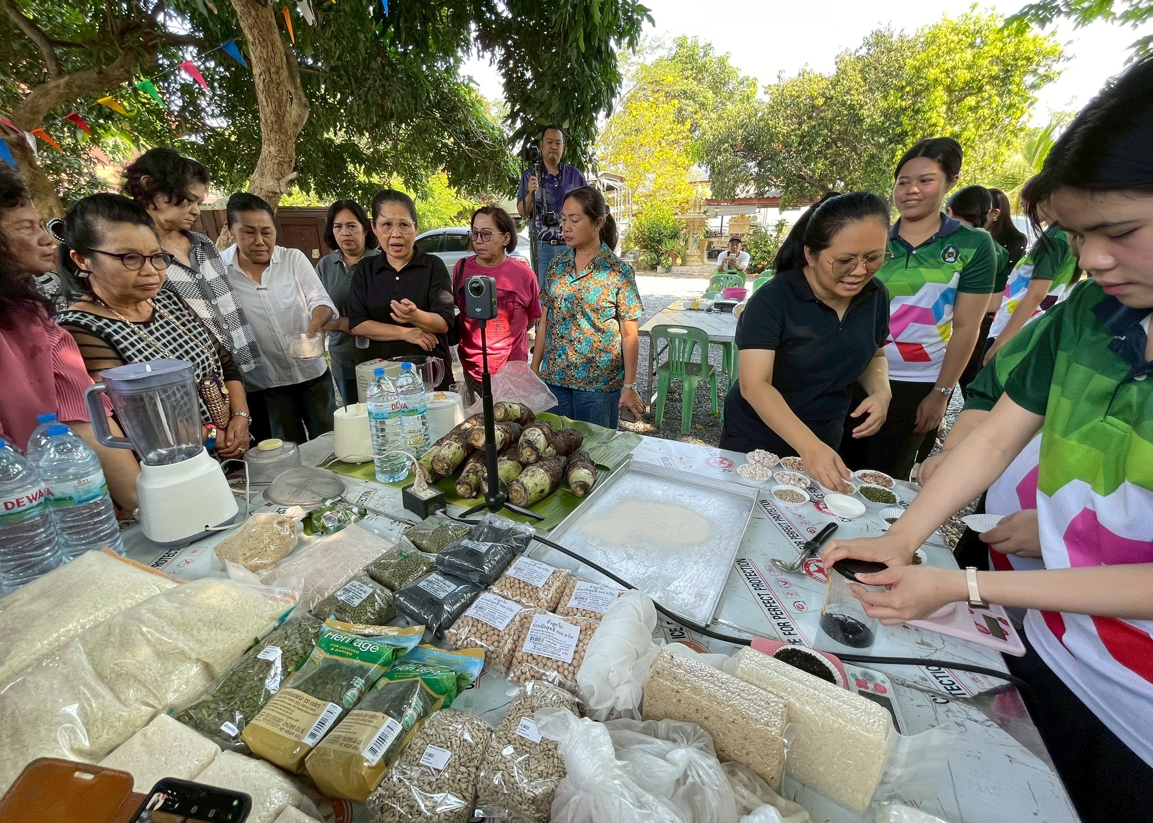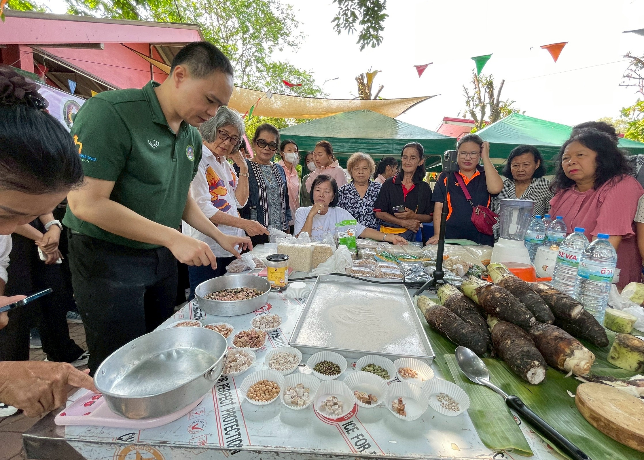 สำหรับกิจกรรมการอบรมเชิงปฏิบัติการในวันนี้ เป็นการทำเผือกผง, เผือกลูกเต๋า ในการทำข้าวผสมธัญพืชเพื่อสุขภาพ และ ขนมบ้าบิ่นจากเผือกหอม