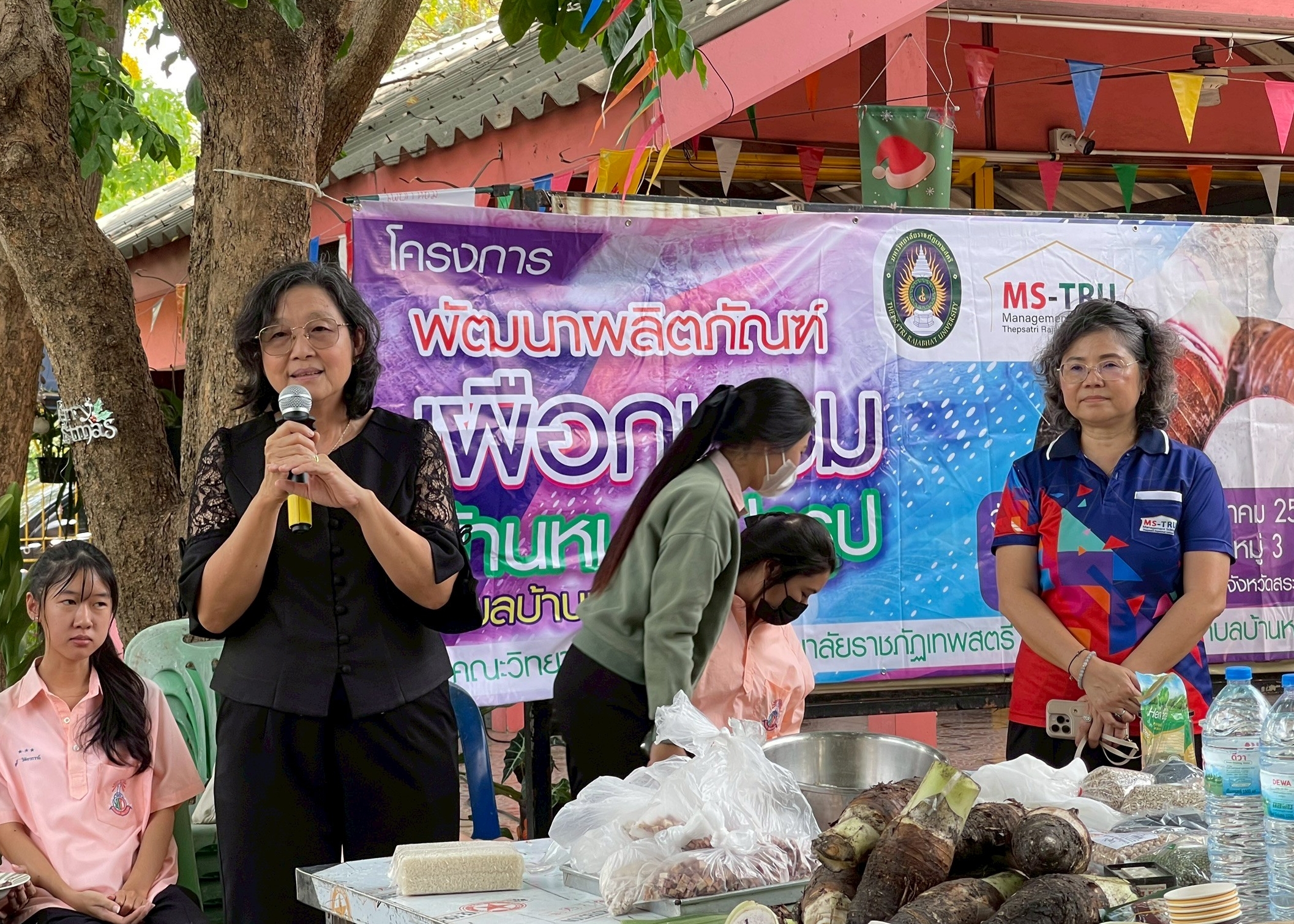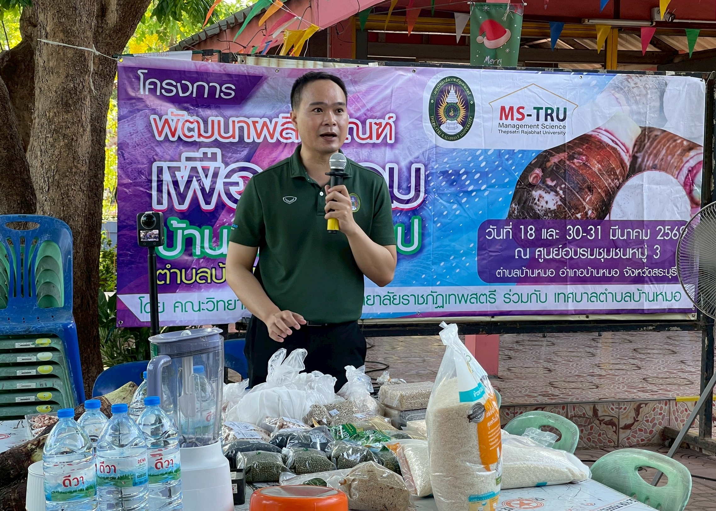 วันจันทร์ที่ 30 มีนาคม 2569 คณะวิทยาการจัดการ มหาวิทยาลัยราชภัฏเทพสตรี ร่วมกับ เทศบาลตำบลบ้านหมอ จัดโครงการพัฒนาผลิตภัณฑ์เผือกหอมบ้านหมอแปรรูป ตำบลบ้านหมอ ให้แก่ ประชาชน และ นักเรียนในพื้นที่ โดยมีวัตถุประสงค์เพื่อพัฒนาผลิตภัณฑ์เผือกหอมบ้านหมอแปรรูป และเพื่อเพิ่มมูลค่าผลิตภัณฑ์เผือกหอมบ้านหมอ ณ ศูนย์อบรมชุมชนหมู่ที่ 3 ตำบลบ้านหมอ