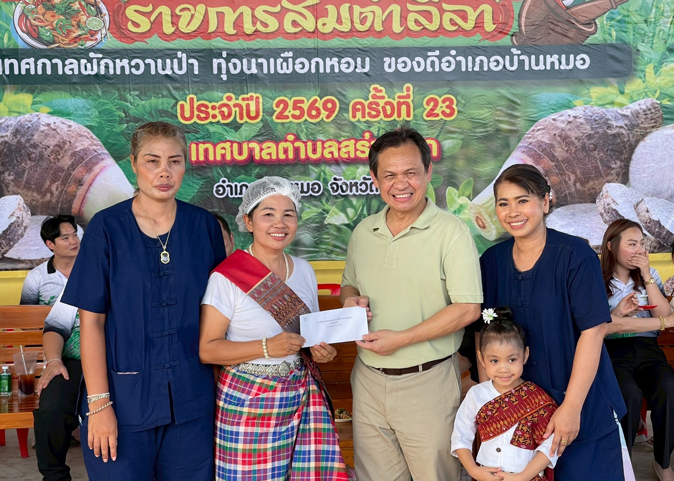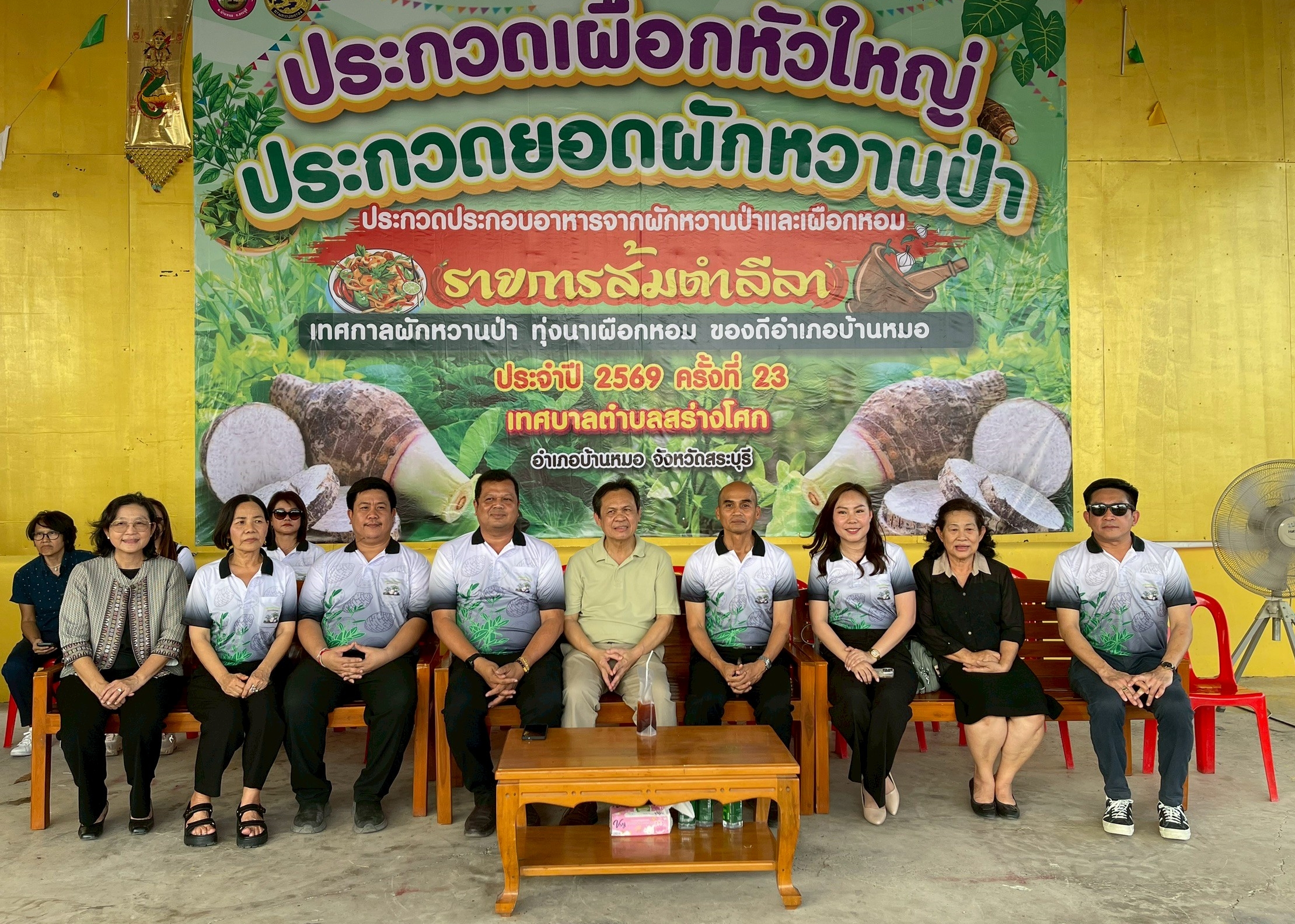 วันศุกร์ที่ 3 เมษายน 2569 ดร.สิริประภา เทพวิมลเพชรกุล นายกเทศมนตรีตำบลบ้านหมอ พร้อมด้วย นายเอกนรินทร์ เภตรารัตน์ รองนายกเทศมนตรี, นางสาวบุษรา ลำเรียง รองนายกเทศมนตรี, สมาชิกสภาเทศบาล เป็นตัวแทน เทศบาลตำบลบ้านหมอ ร่วมพิธีเปิดงานเทศกาล ผักหวานป่า ทุ่งนาเผือกหอม ของดีอำเภอบ้านหมอ อำเภอบ้านหมอ จังหวัดสระบุรี ประจำปี 2569 (ครั้งที่ 23)