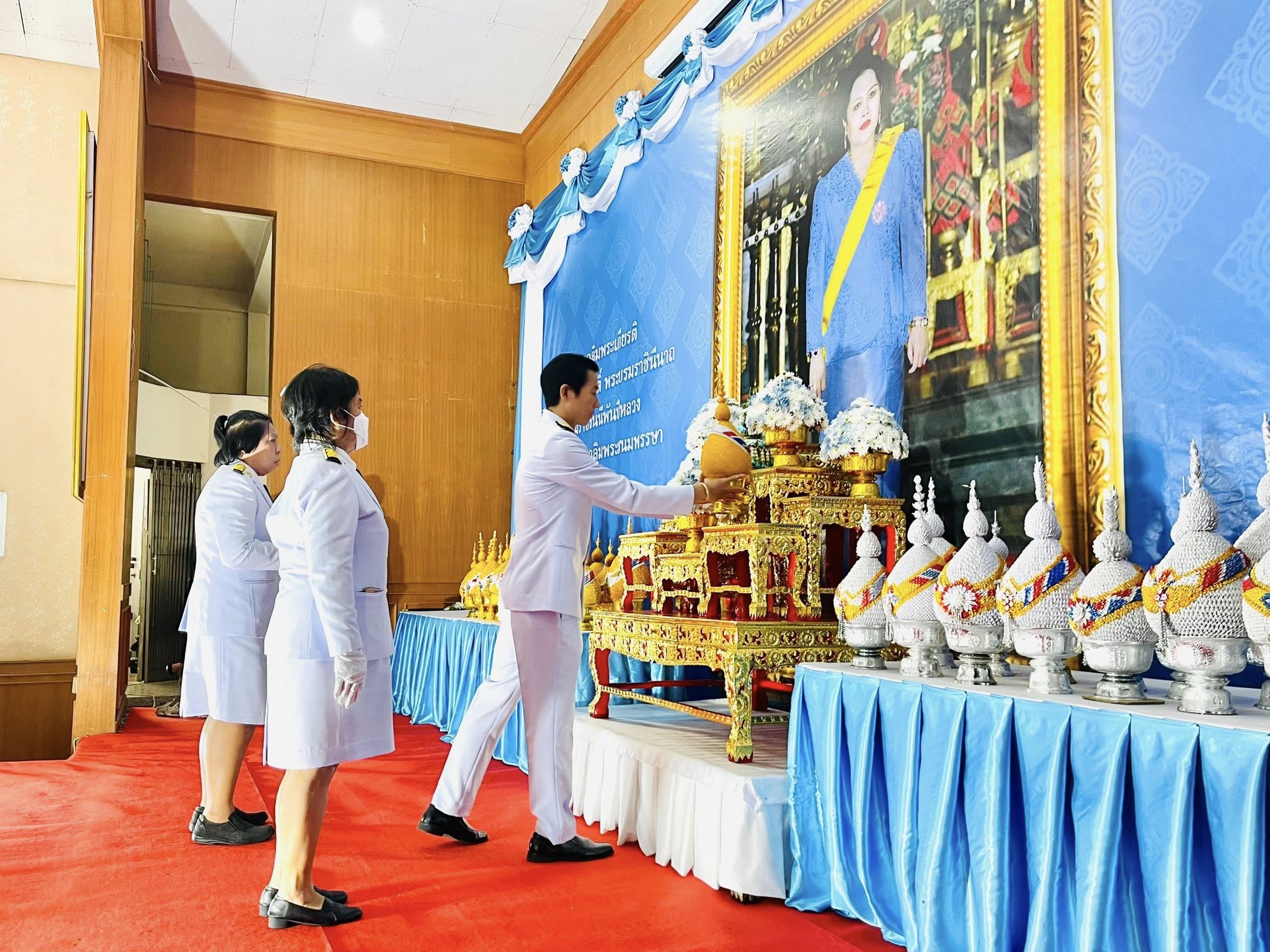โดยในช่วงเช้า ร่วมพิธีเจริญพระพุทธมนต์และทำบุญตักบาตรถวายพระราชกุศลเนื่องในโอกาสมหามงคลเฉลิมพระชนมพรรษา สมเด็จพระนางเจ้าสิริกิติ์ พระบรมราชินีนาถ พระบรมราชชนนีพันปีหลวง