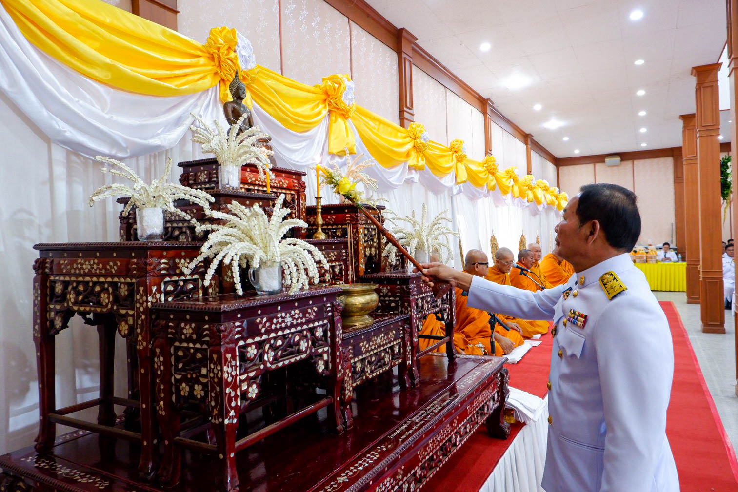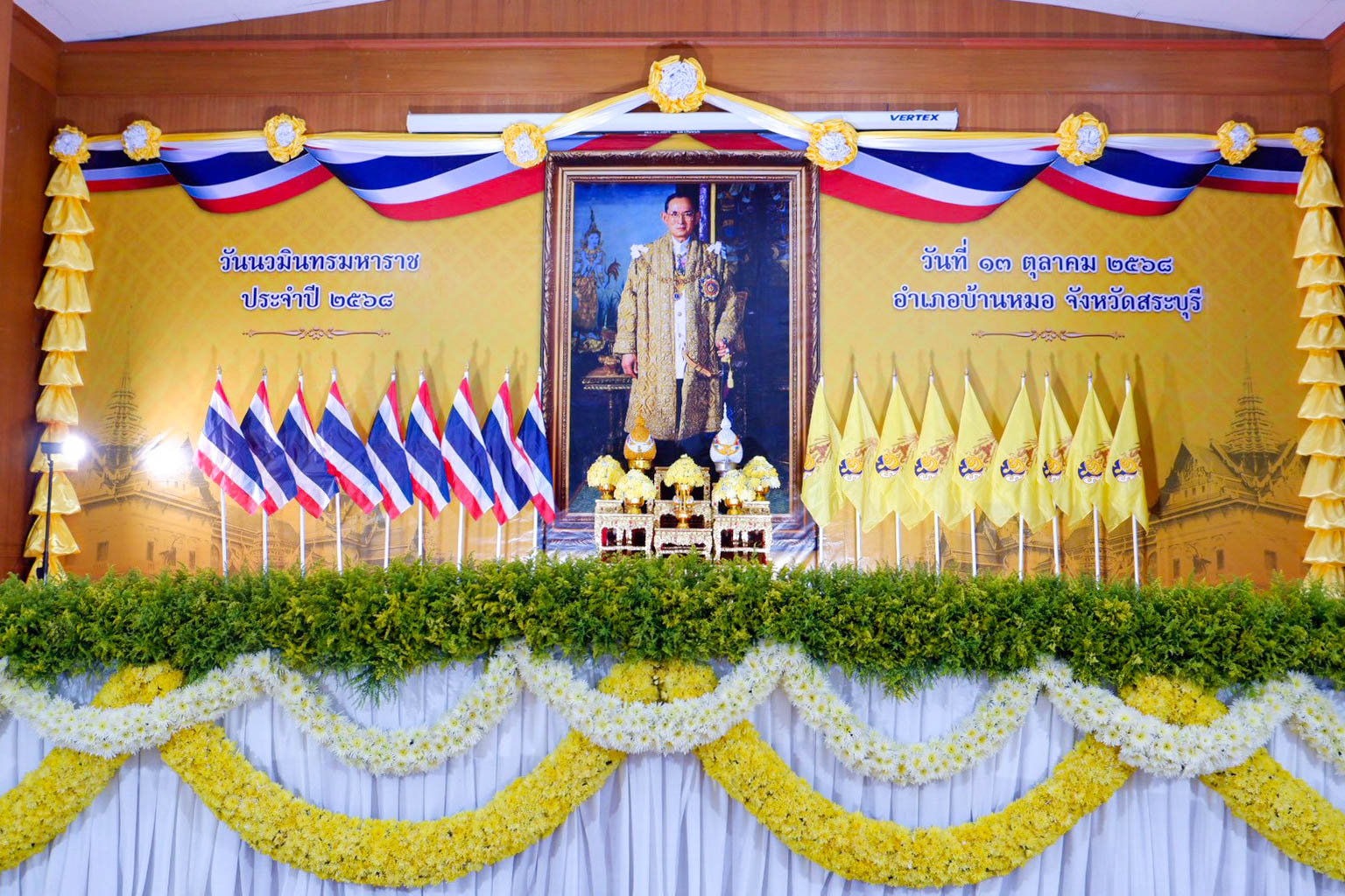 ร่วมกิจกรรมเนื่องในวันนวมินทรมหาราช พิธีสวดพระพุทธมนต์และตักบาตร ถวายพระราชกุศล และ พิธีวางพวงมาลา ณ ศาลาประชาคมเทศบาลตำบลบ้านหมอ