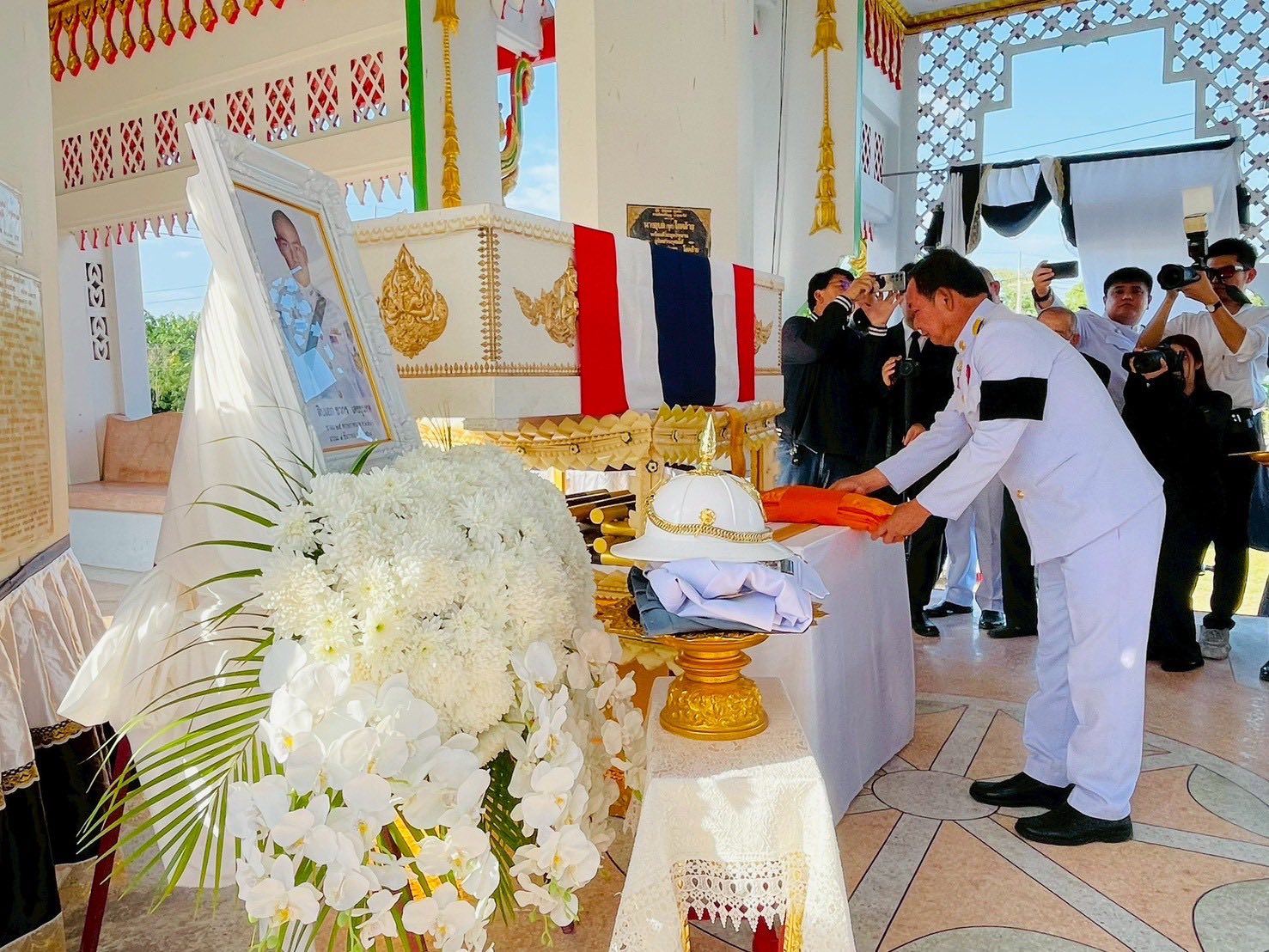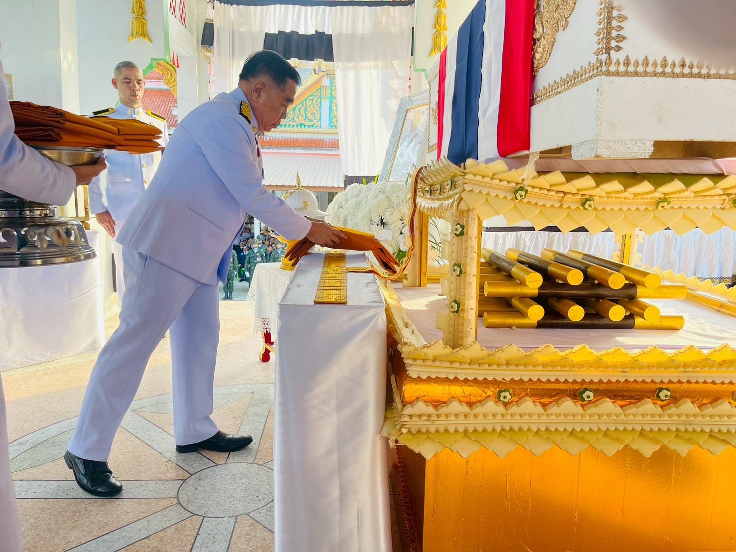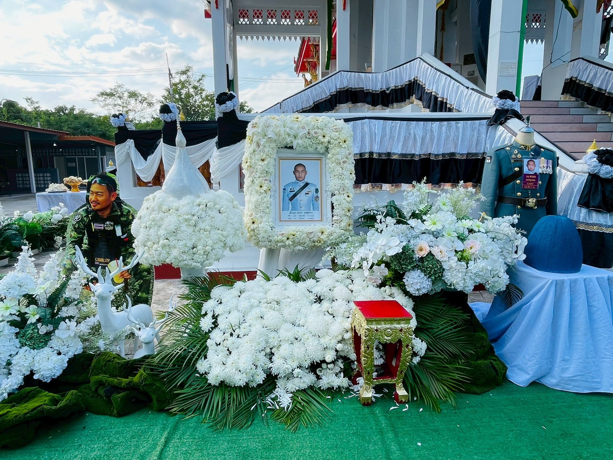 พลเอกไพศาล หนูสังข์ ที่ปรึกษาพิเศษกองทัพบก นายเลิศชัย สกลเสาวภาคย์ รองผู้ว่าราชการจังหวัดสระบุรี พลตรีศรันตย์ รอดบุญธรรม ผู้บัญชาการกองพลทหารม้า 2 รักษาพระองค์ พลตรีภัทราวุธ ทิพโกมล ผู้บัญชาการมลฑลทหารบกที่ 18 คณะทหารกองทัพภาคที่ 1 ผู้บังคับหน่วยกองพันทหารม้าที่ 11 กรมทหารม้าที่ 4 รักษาพระองค์ (ม.4 พัน.11 รอ.) คณะนายทหารหน่วยต้นสังกัด หัวหน้าส่วนราชการ ข้าราชการ ทหาร ตำรวจ องค์กรปกครองส่วนท้องถิ่น กำนัน ผู้ใหญ่บ้าน เพื่อนร่วมรุ่นทหาร พี่น้องประชาชน เดินทางไปร่วมแสดงความอาลัย และสดุดีทหารกล้าที่สละชีพเพื่อปกป้องอธิปไตยของชาติไทย เป็นจำนวนมาก