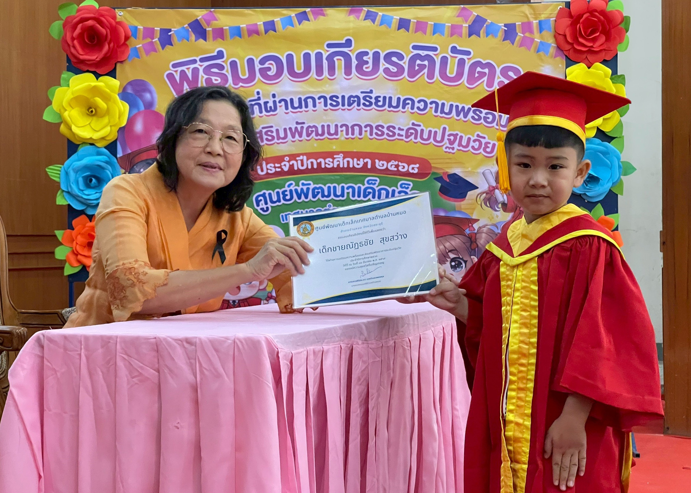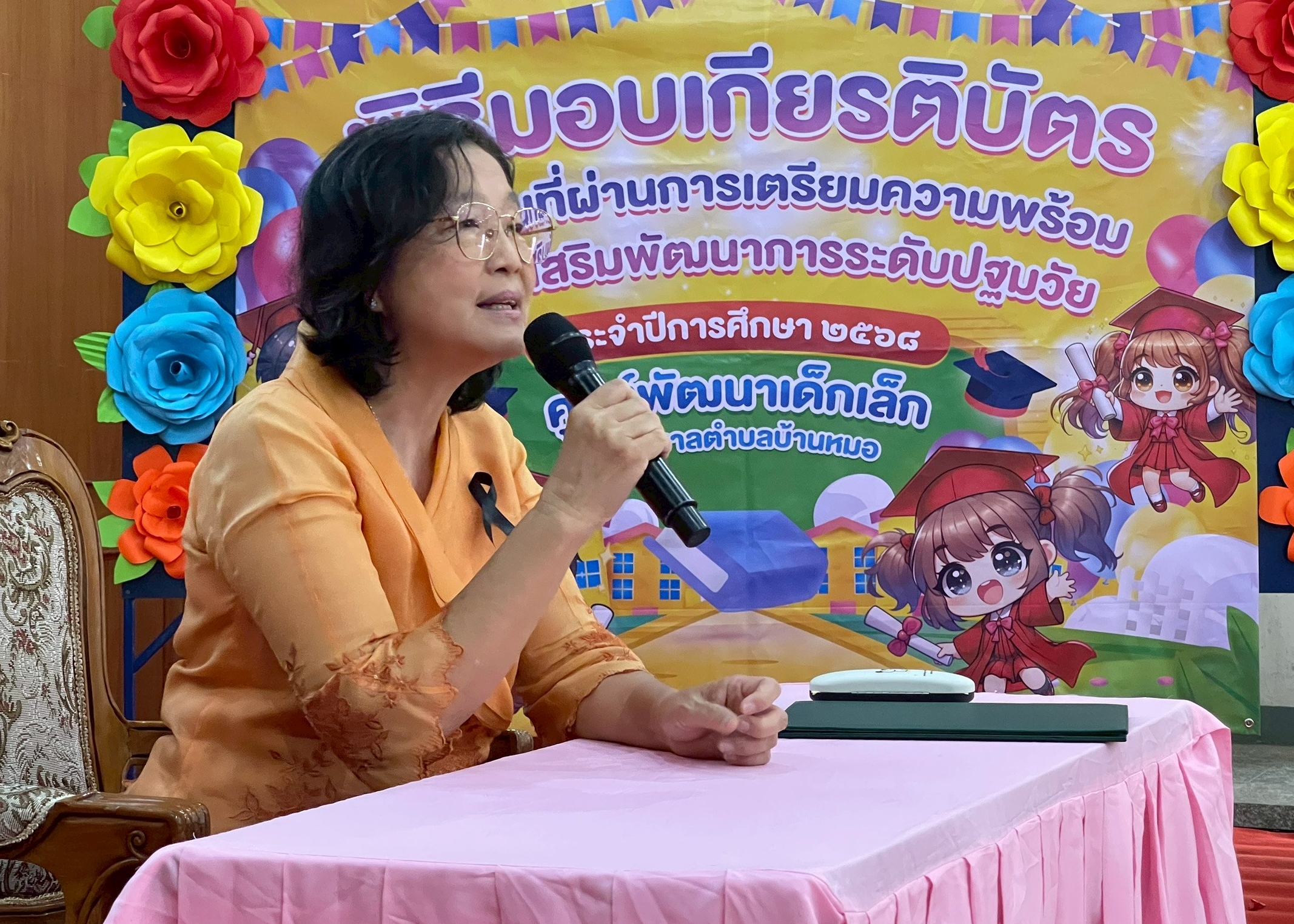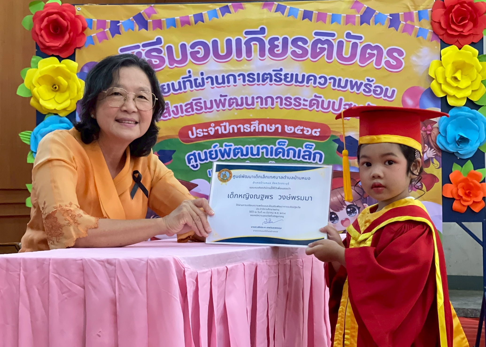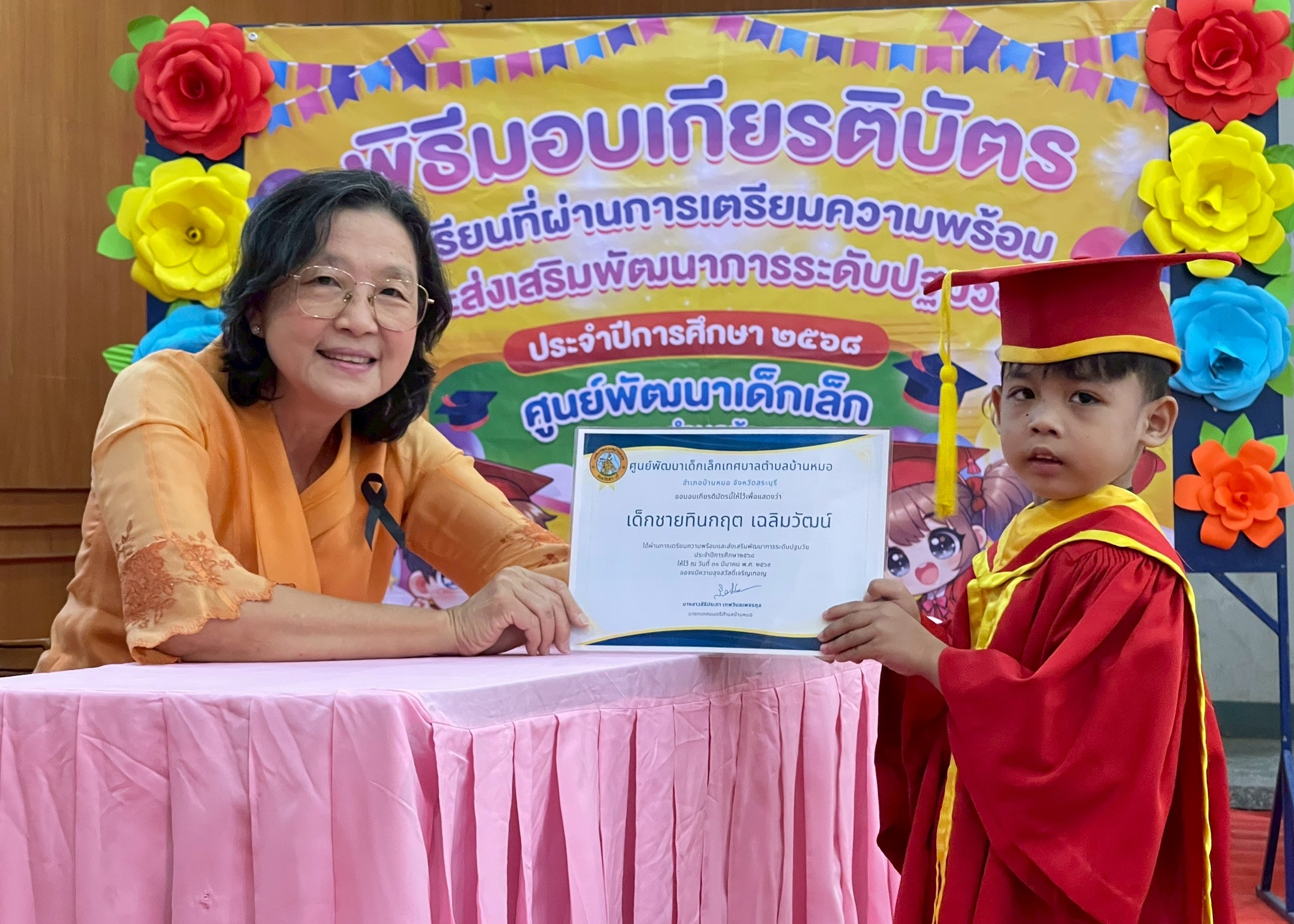 จัดพิธีมอบเกียรติบัตร นักเรียนที่ผ่านการเตรียมความพร้อมและส่งเสริมพัฒนาการระดับปฐมวัย ประจำปีการศึกษา 2568 ของศูนย์พัฒนาเด็กเล็กเทศบาลตำบลบ้านหมอ ซึ่งมีผู้สำเร็จการศึกษาจำนวน 35 คน โดยมีผู้ปกครองมาร่วมแสดงความยินดีกับน้องๆ ท่ามกลางบรรยากาศสุดชื่นมื่น ณ ศาลาประชาคมเทศบาลตำบลบ้านหมอ