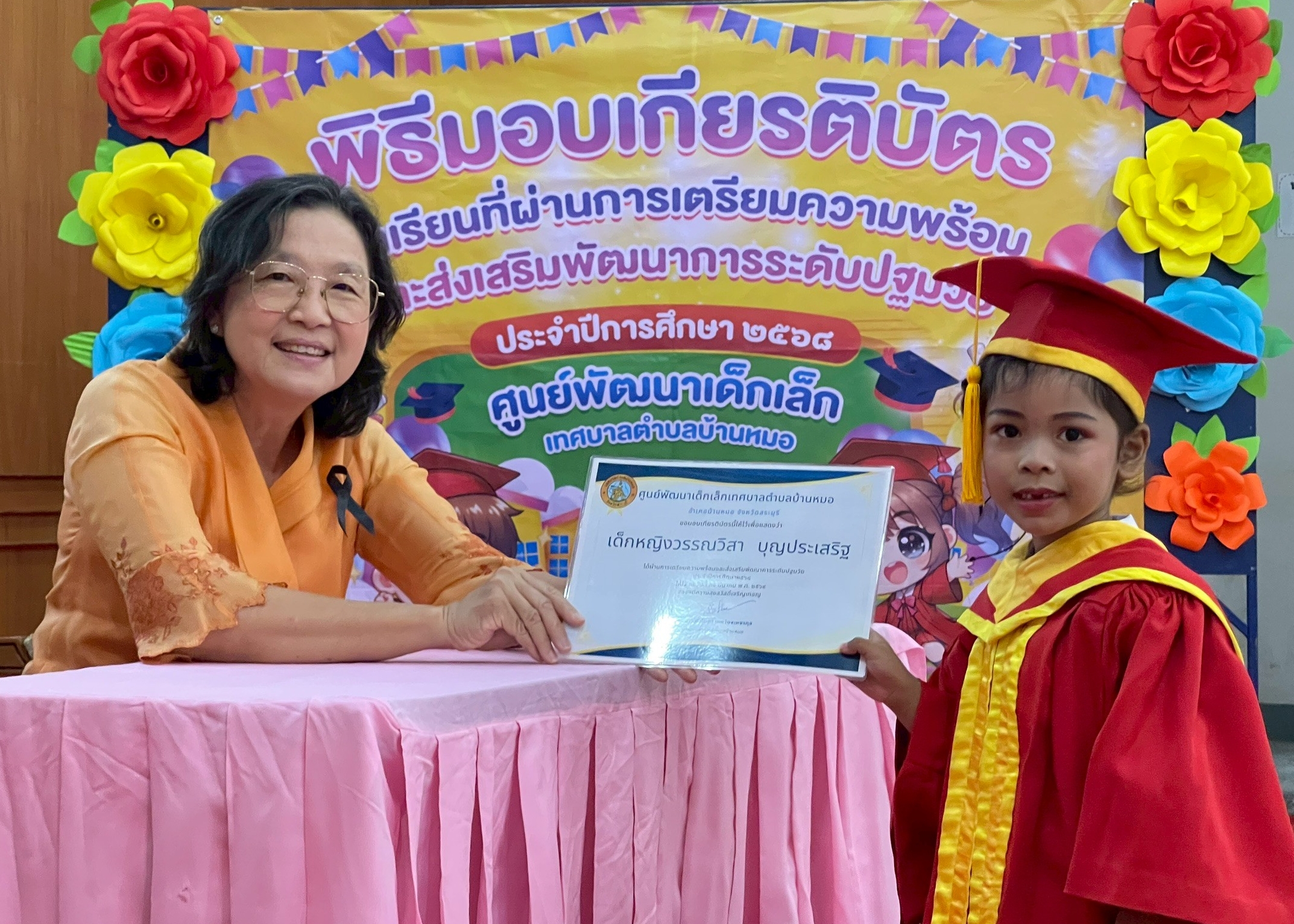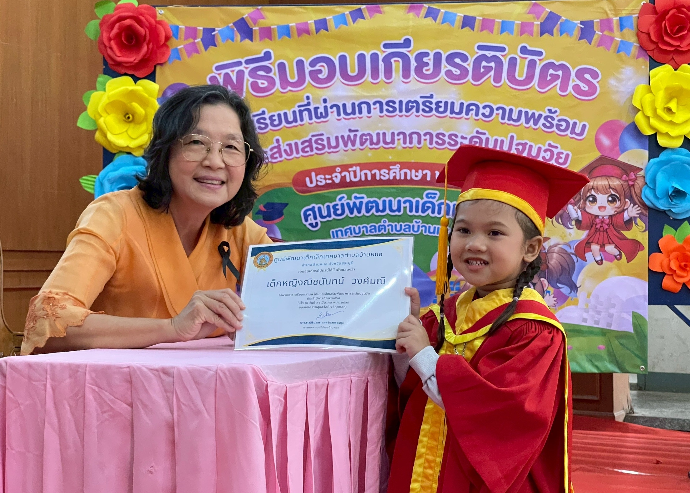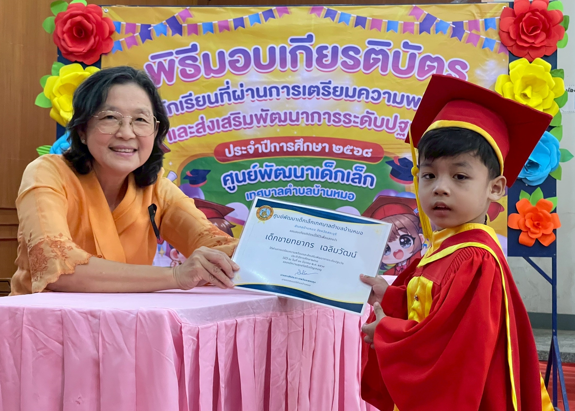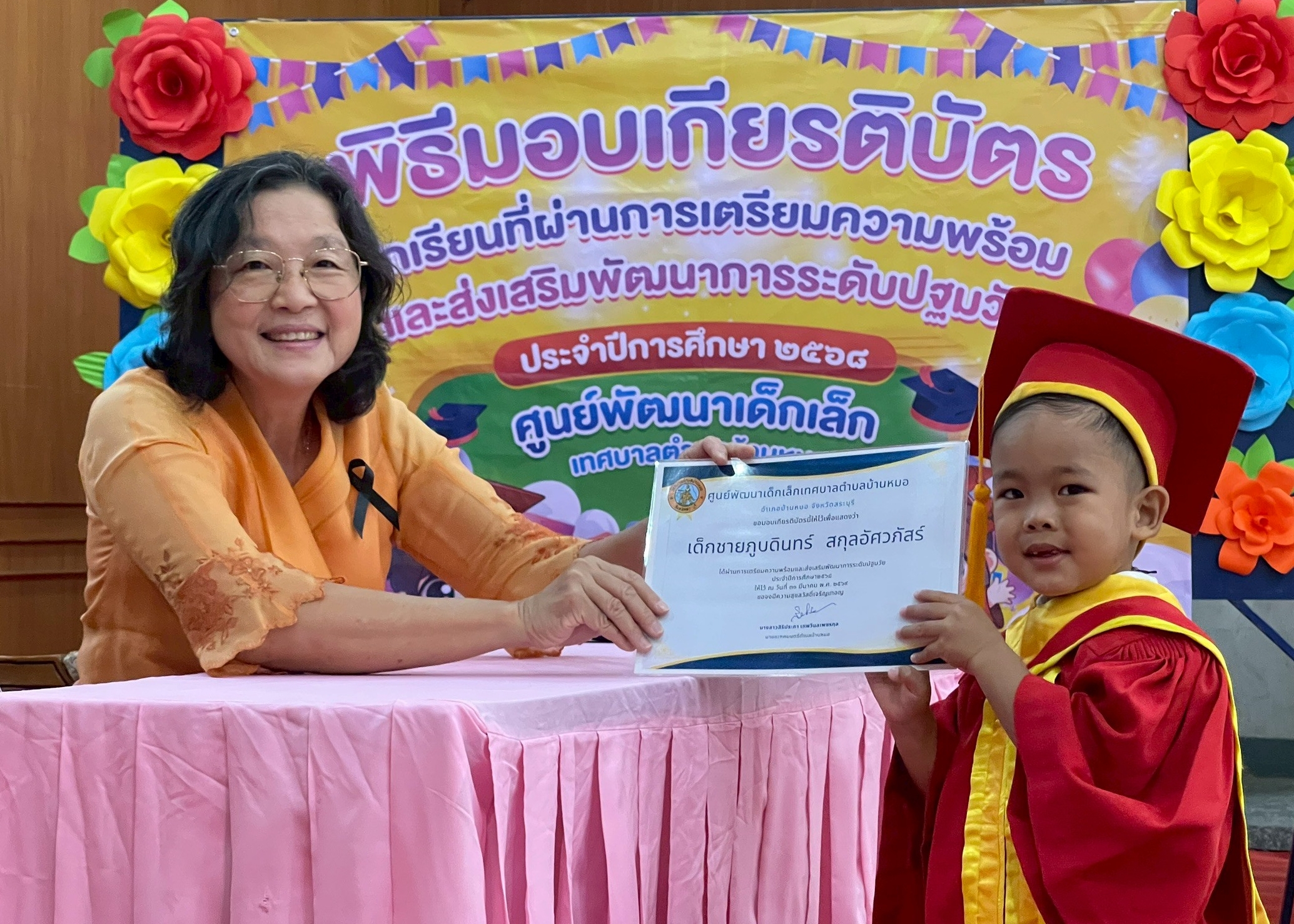 จัดพิธีมอบเกียรติบัตร นักเรียนที่ผ่านการเตรียมความพร้อมและส่งเสริมพัฒนาการระดับปฐมวัย ประจำปีการศึกษา 2568 ของศูนย์พัฒนาเด็กเล็กเทศบาลตำบลบ้านหมอ ซึ่งมีผู้สำเร็จการศึกษาจำนวน 35 คน โดยมีผู้ปกครองมาร่วมแสดงความยินดีกับน้องๆ ท่ามกลางบรรยากาศสุดชื่นมื่น ณ ศาลาประชาคมเทศบาลตำบลบ้านหมอ