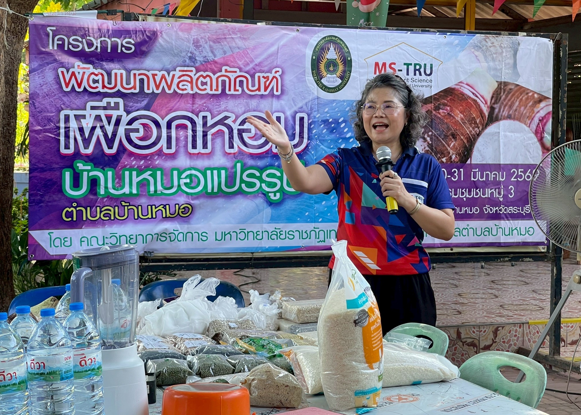 วันจันทร์ที่ 30 มีนาคม 2569 คณะวิทยาการจัดการ มหาวิทยาลัยราชภัฏเทพสตรี ร่วมกับ เทศบาลตำบลบ้านหมอ จัดโครงการพัฒนาผลิตภัณฑ์เผือกหอมบ้านหมอแปรรูป ตำบลบ้านหมอ ให้แก่ ประชาชน และ นักเรียนในพื้นที่ โดยมีวัตถุประสงค์เพื่อพัฒนาผลิตภัณฑ์เผือกหอมบ้านหมอแปรรูป และเพื่อเพิ่มมูลค่าผลิตภัณฑ์เผือกหอมบ้านหมอ ณ ศูนย์อบรมชุมชนหมู่ที่ 3 ตำบลบ้านหมอ